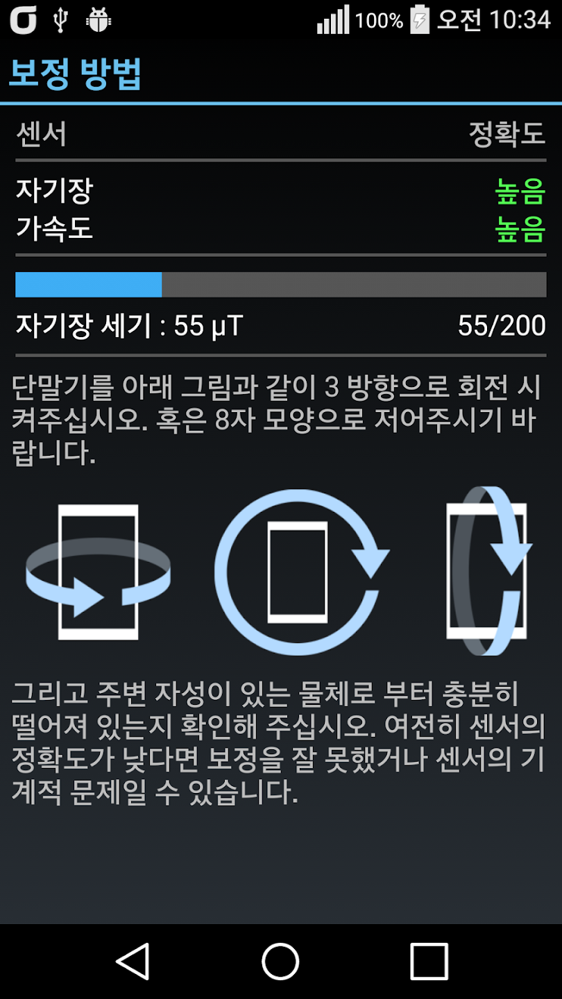 아무리 정교한 센서를 가진 앱이라도 주변에 금속물질이나 전자기기에 영향을 받을 수 있기 때문에 항상 주의가 필요해요.