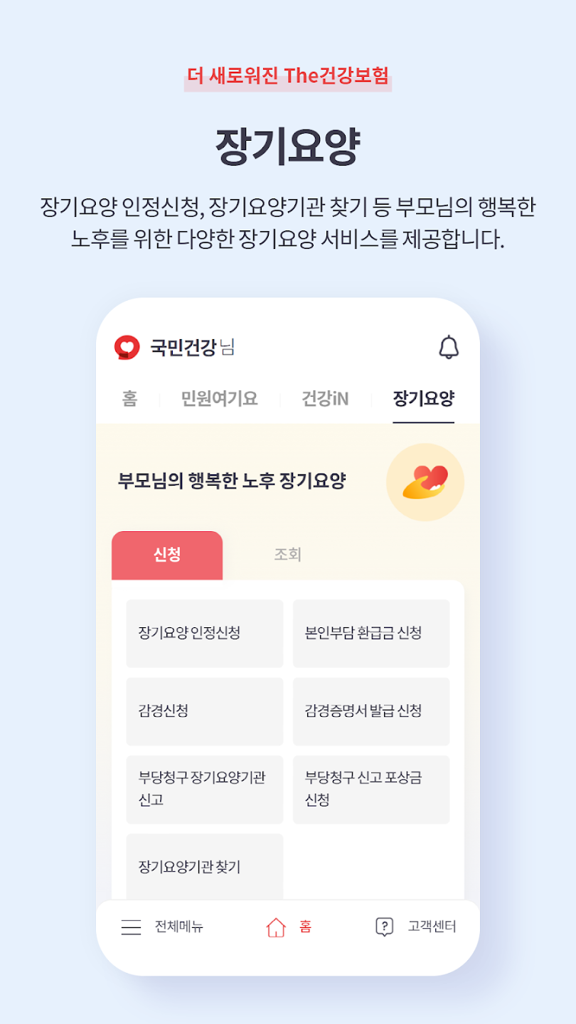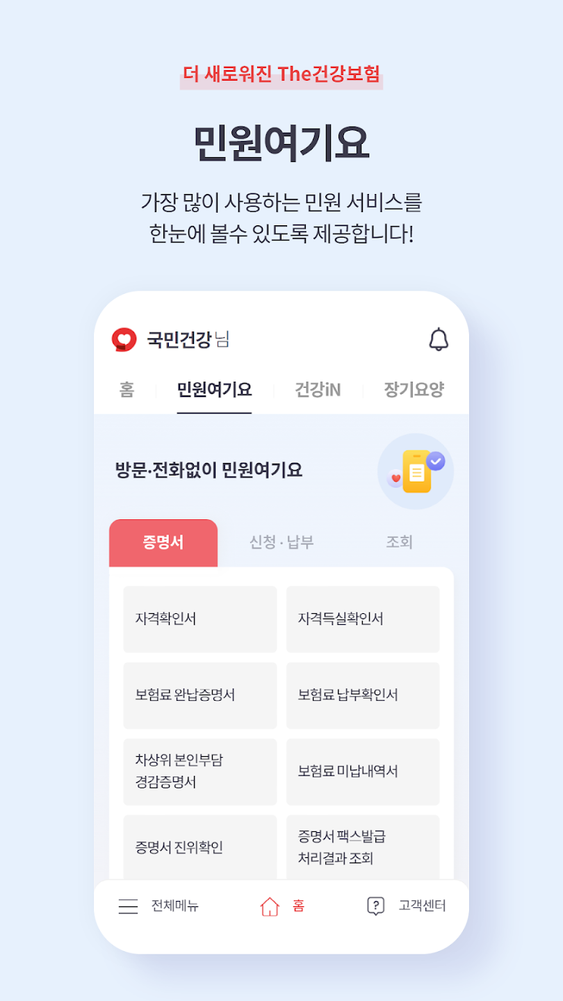이 앱을 통해 건강보험 관련 민원 서비스와 정보를 간편하게 이용할 수 있습니다.