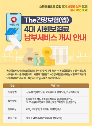 - 앱 내에서 "보험료 납부" 메뉴를 선택한 후, 안내에 따라 진행하면 됩니다.