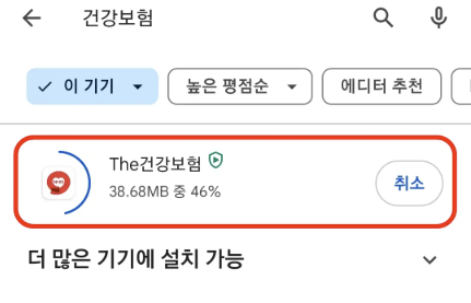 - 검색 결과에서 "더 건강보험" 앱을 선택한 후, "설치" 버튼을 클릭합니다.