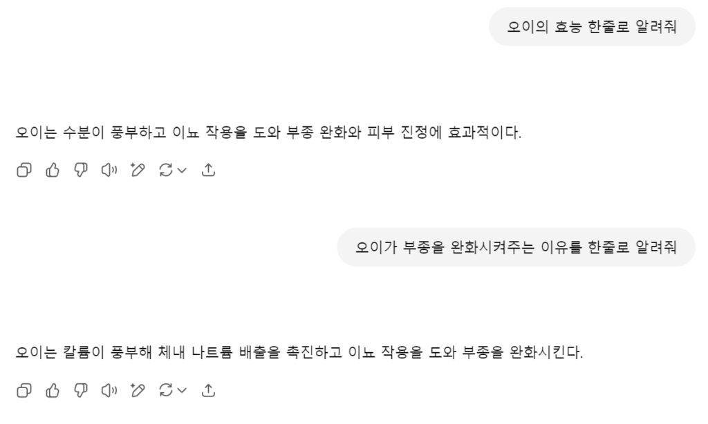 - 응답 확인 : 챗GPT가 생성한 응답을 확인합니다. 필요에 따라 추가 질문을 하거나 대화를 이어갈 수 있습니다.