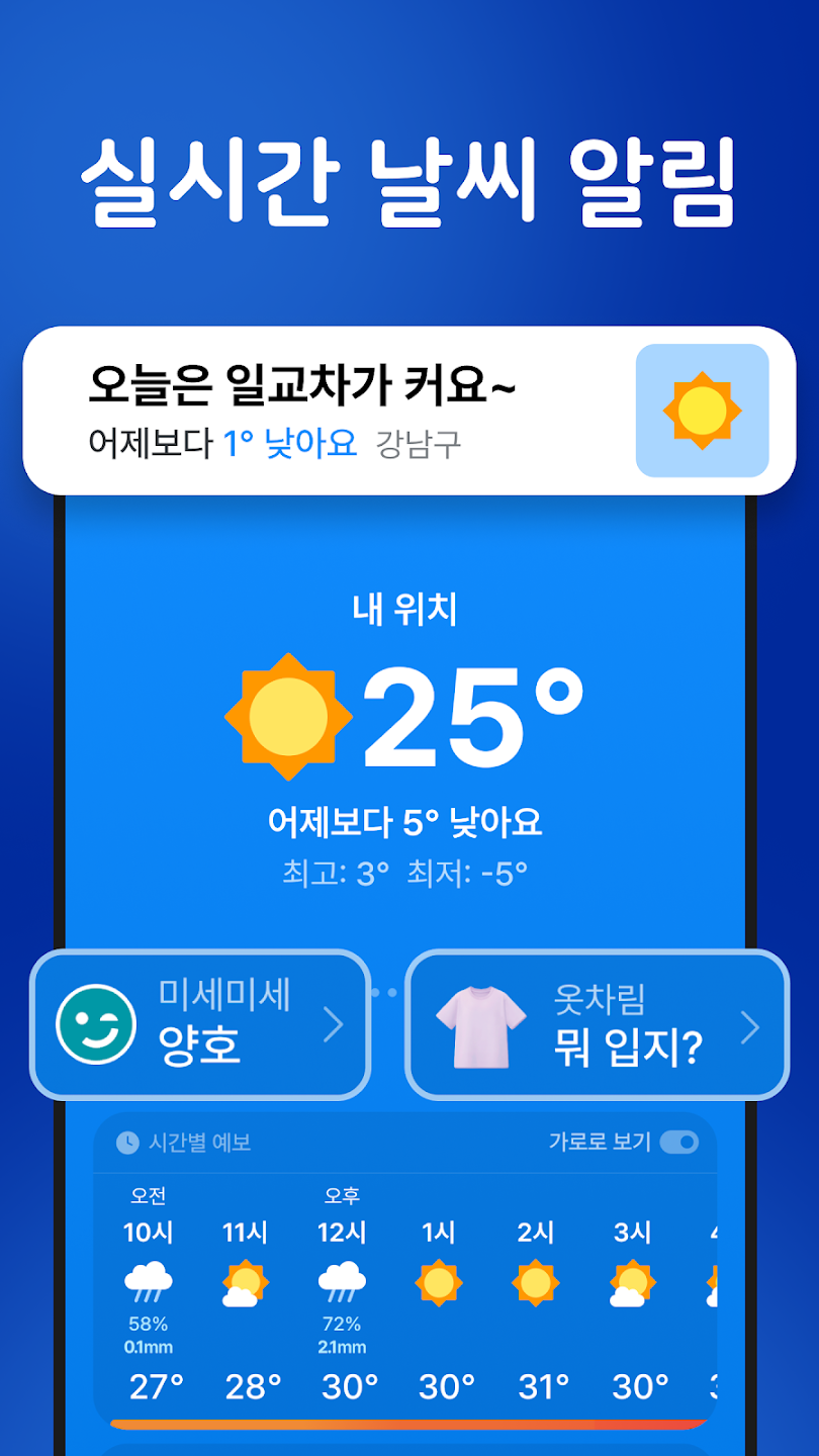 특히 현위치 기반의 날씨 어플은 GPS를 통해 사용자의 현재 위치에 맞는 정확한 날씨 정보를 실시간으로 제공합니다.