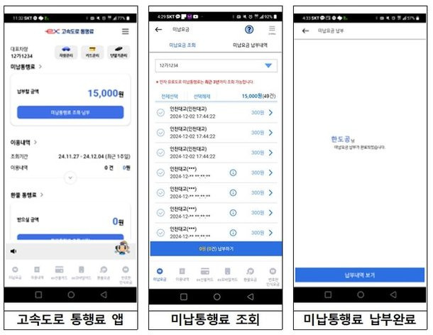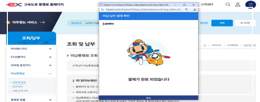 - 조회 결과 확인 : 입력한 차량 번호에 대한 미납 통행료가 있는지 확인할 수 있습니다.