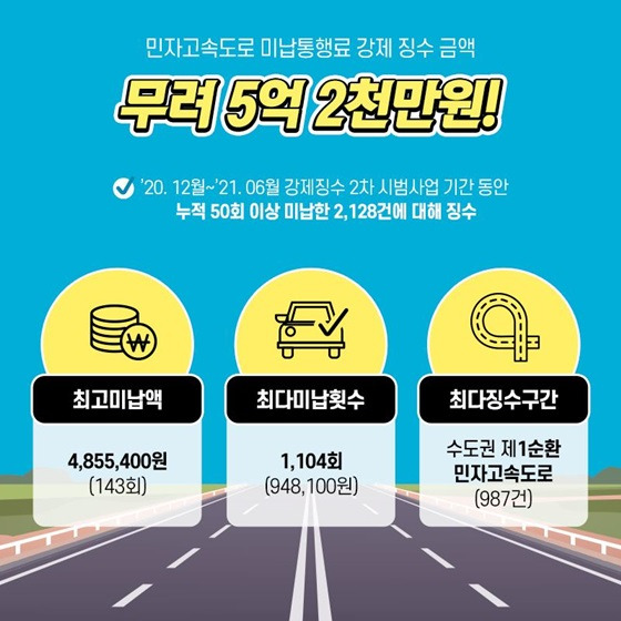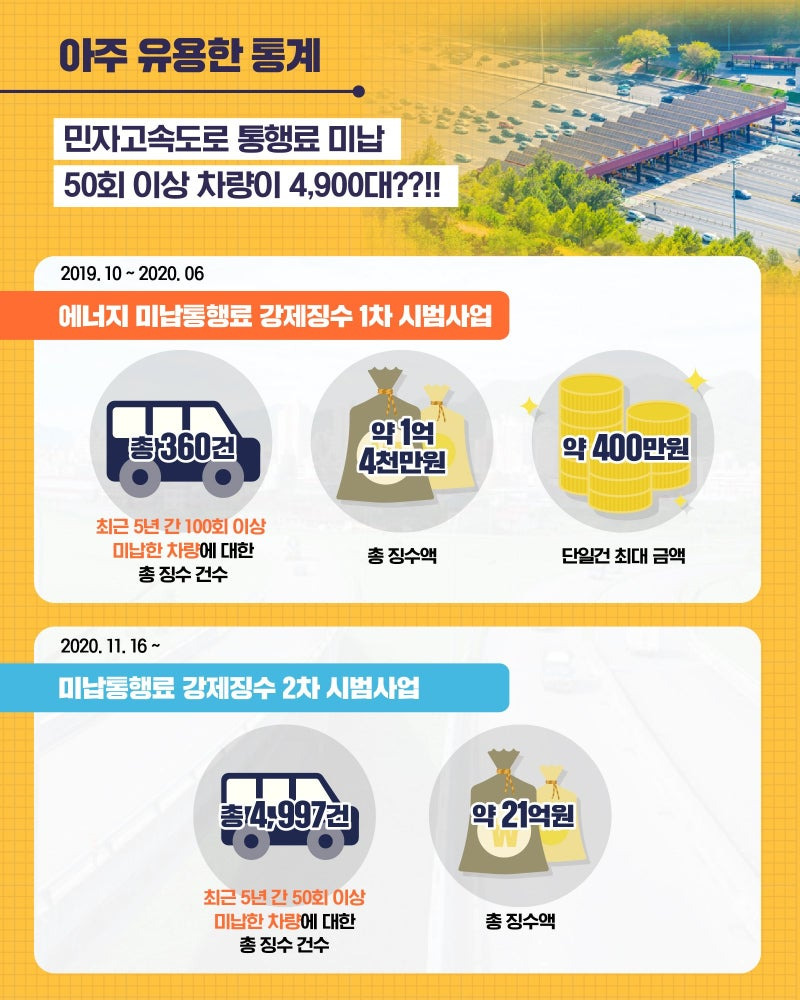 고속도로를 이용하실 때는 미납 통행료가 없도록 주의하시기 바랍니다.