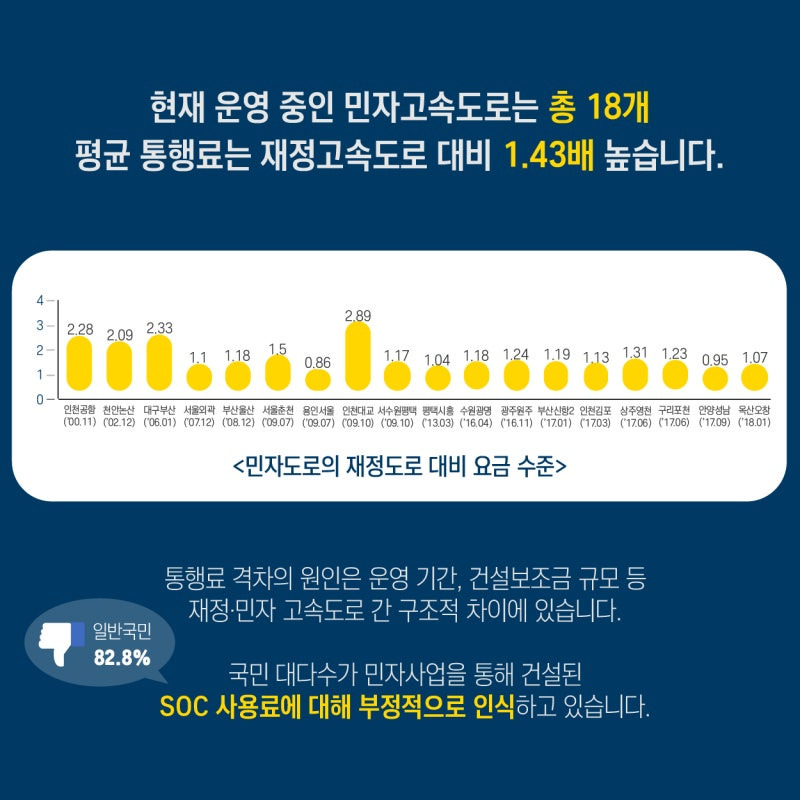 민자고속도로는 일반 고속도로와는 달리, 통행료가 상대적으로 높은 편입니다.