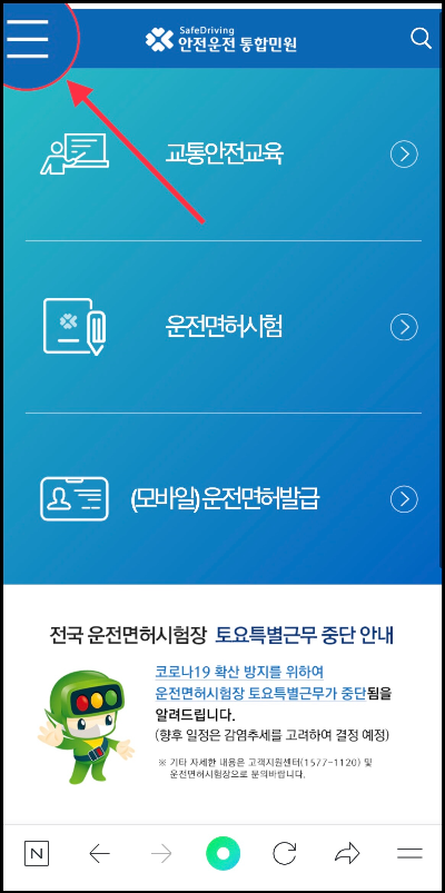 - 홈페이지 접속 : 안전운전 통합민원 홈페이지에 접속합니다.