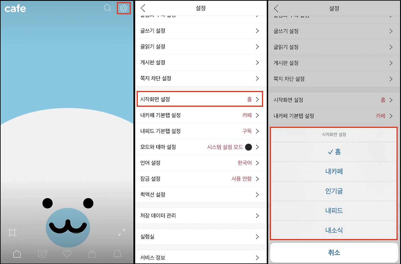 다음 시작페이지 설정 방법은 다음과 같습니다: