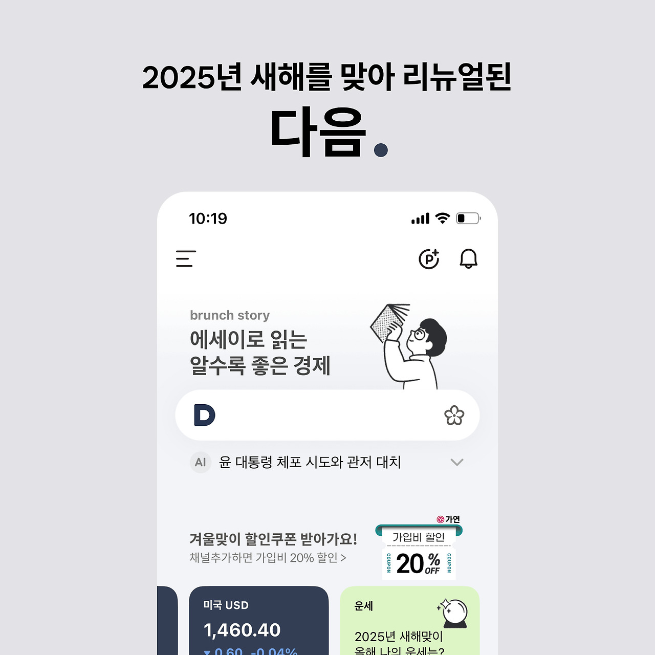 다음(Daum)은 한국에서 가장 인기 있는 포털 사이트 중 하나로, 다양한 정보와 서비스를 제공합니다.