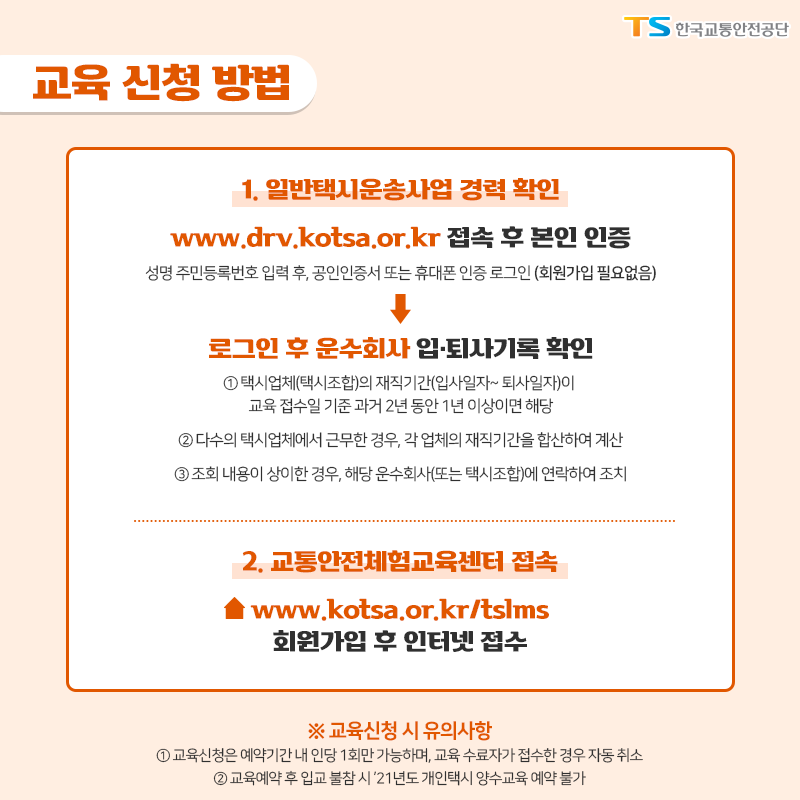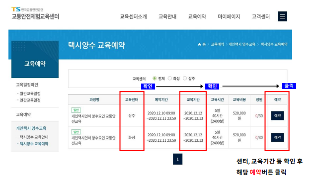 개인택시 양수교육 신청 방법