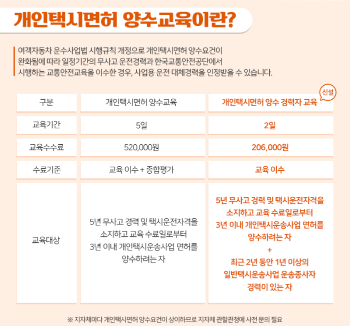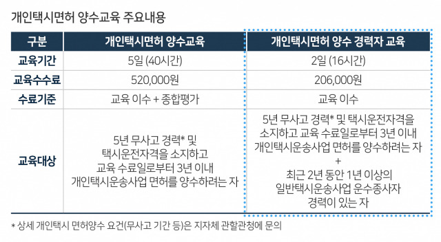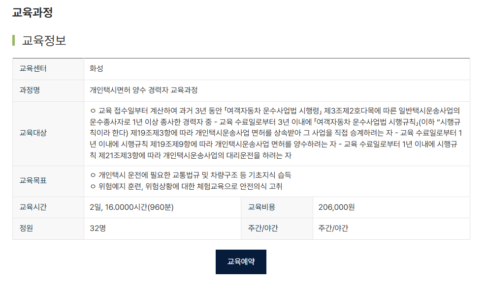 개인택시 양수교육 과정 설명