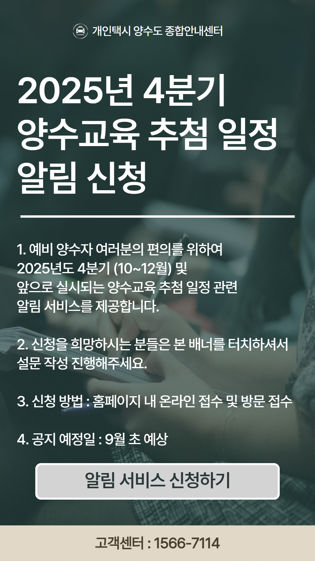 안전하고 전문적인 운전자로 성장하기 위해 꼭 필요한 과정이니, 많은 분들이 이 교육을 통해 성공적인 개인택시 운영을 하시길 바랍니다.