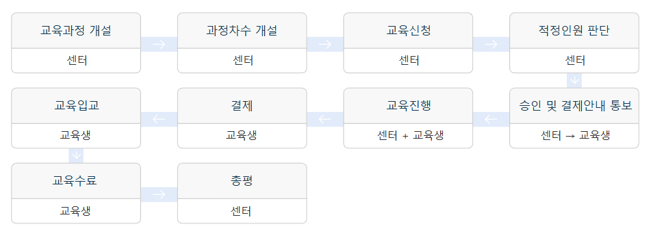 - A: 중도 포기 시, 교육비 환불은 불가하며, 다음 교육에 다시 신청해야 합니다.