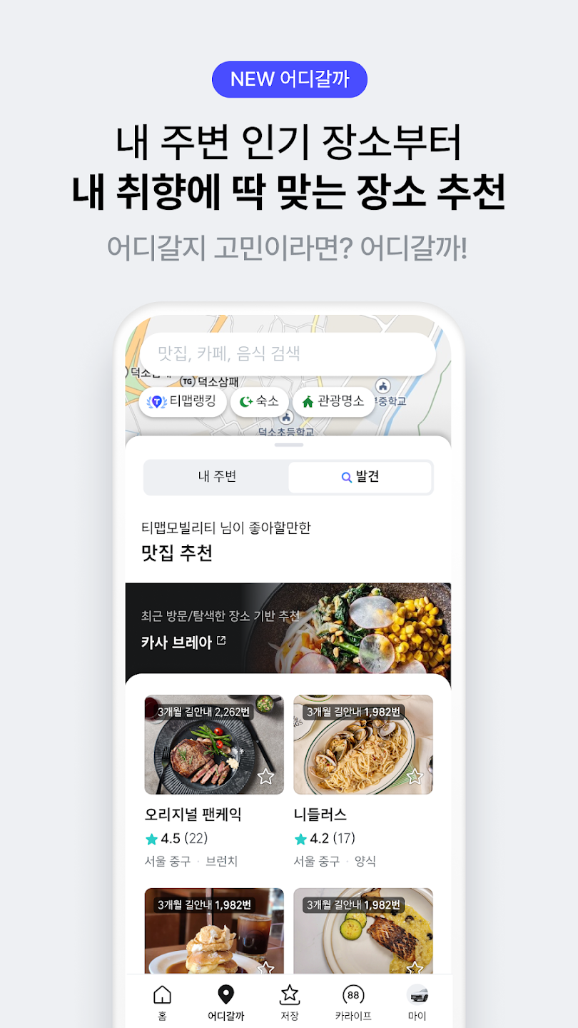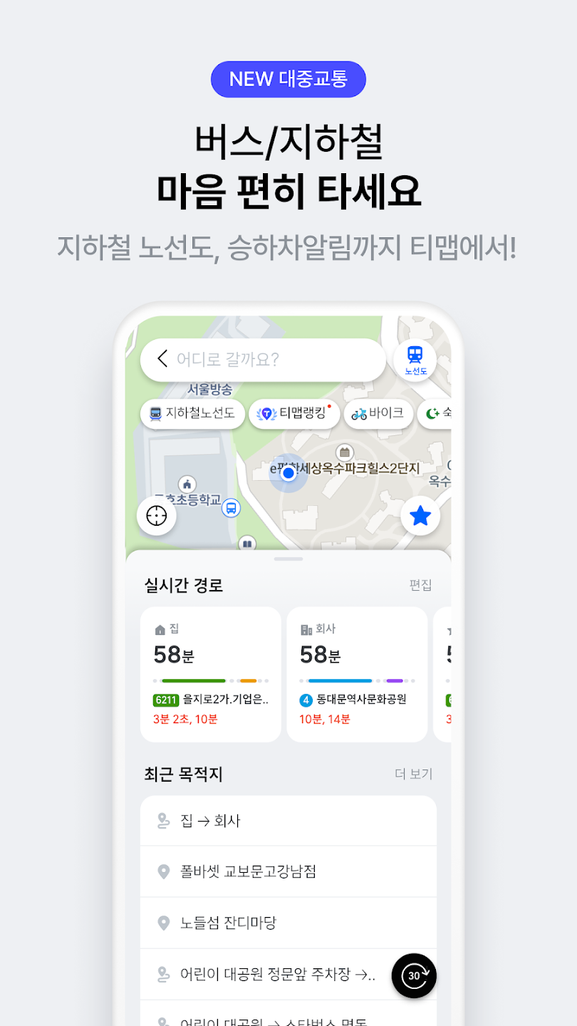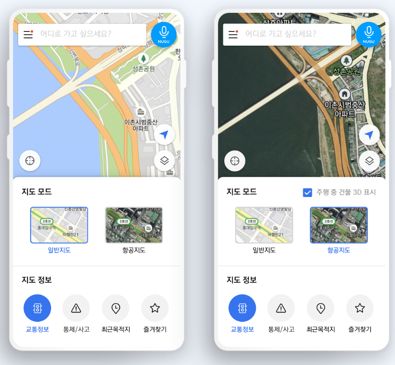 - 길찾기 : 목적지까지의 최적 경로를 안내하며, 여러 경로를 비교할 수 있는 기능도 제공합니다.
