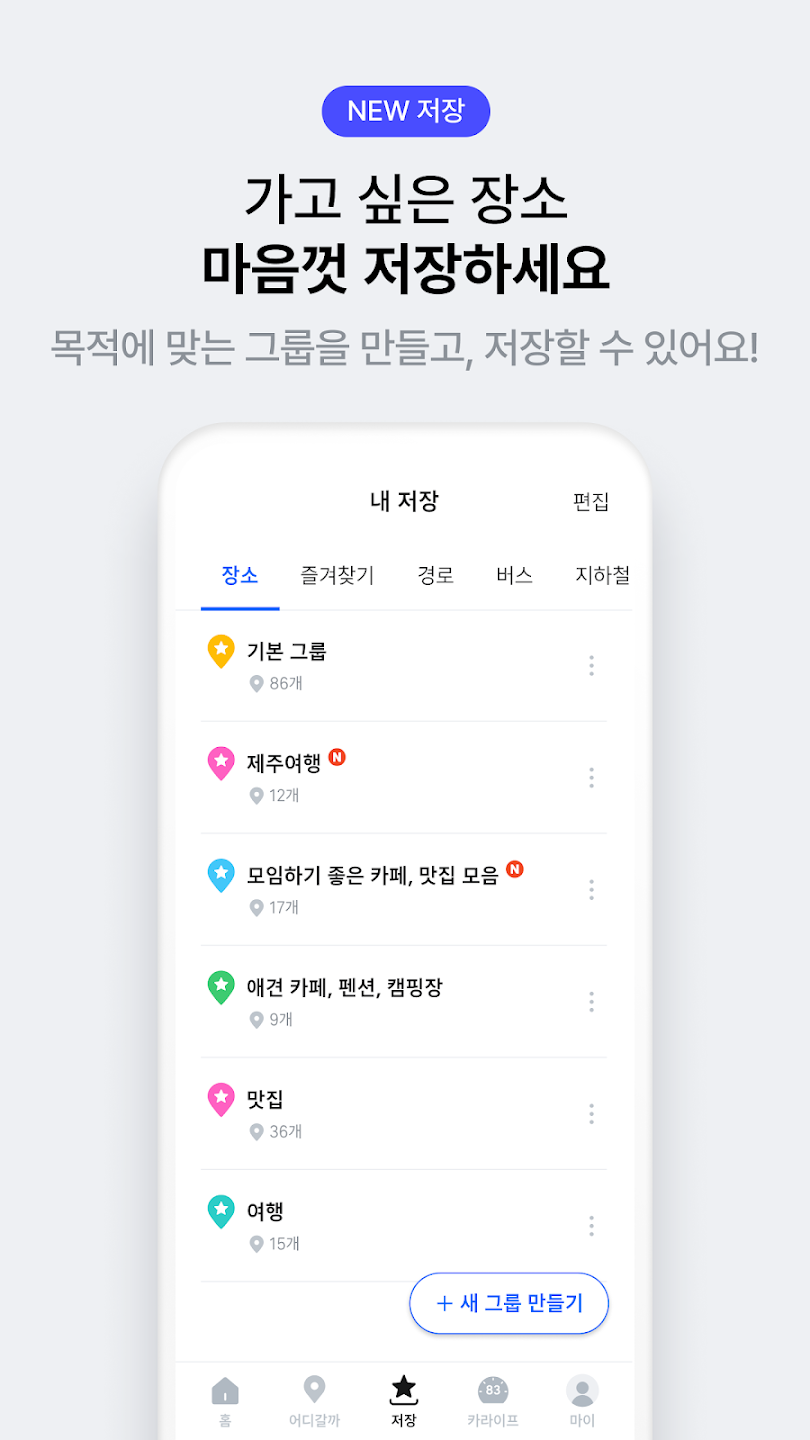 - 즐겨찾기 : 자주 가는 장소를 즐겨찾기로 등록하여 빠르게 접근할 수 있습니다.