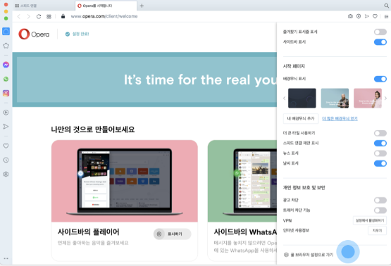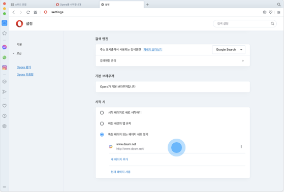 - 설정이 완료되면 오페라를 재시작하여 확인합니다.