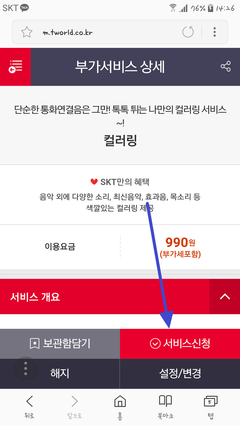 - 컬러링 메뉴 선택 : '컬러링' 또는 '부가서비스' 메뉴를 찾아 선택합니다.