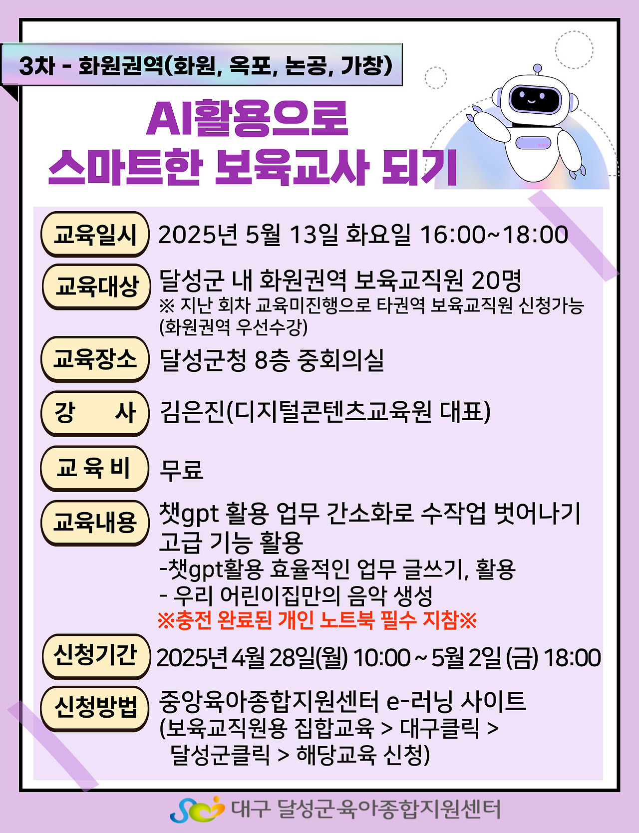 바쁜 일상 속에서도 전문성을 높일 수 있는 기회를 제공하니, 많은 분들이 적극적으로 참여하셨으면 좋겠습니다.