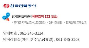 전기 고장 신고나 요금 관련 문의는 이 번호로 간편하게 해결할 수 있습니다.