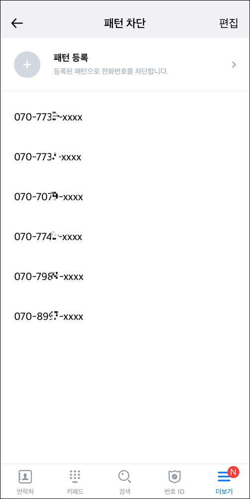 이렇게 하면 070으로 시작하는 모든 전화번호가 차단됩니다.