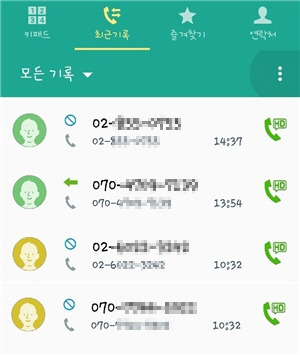 - 전화 앱을 열고, [최근 통화] 목록으로 이동합니다.