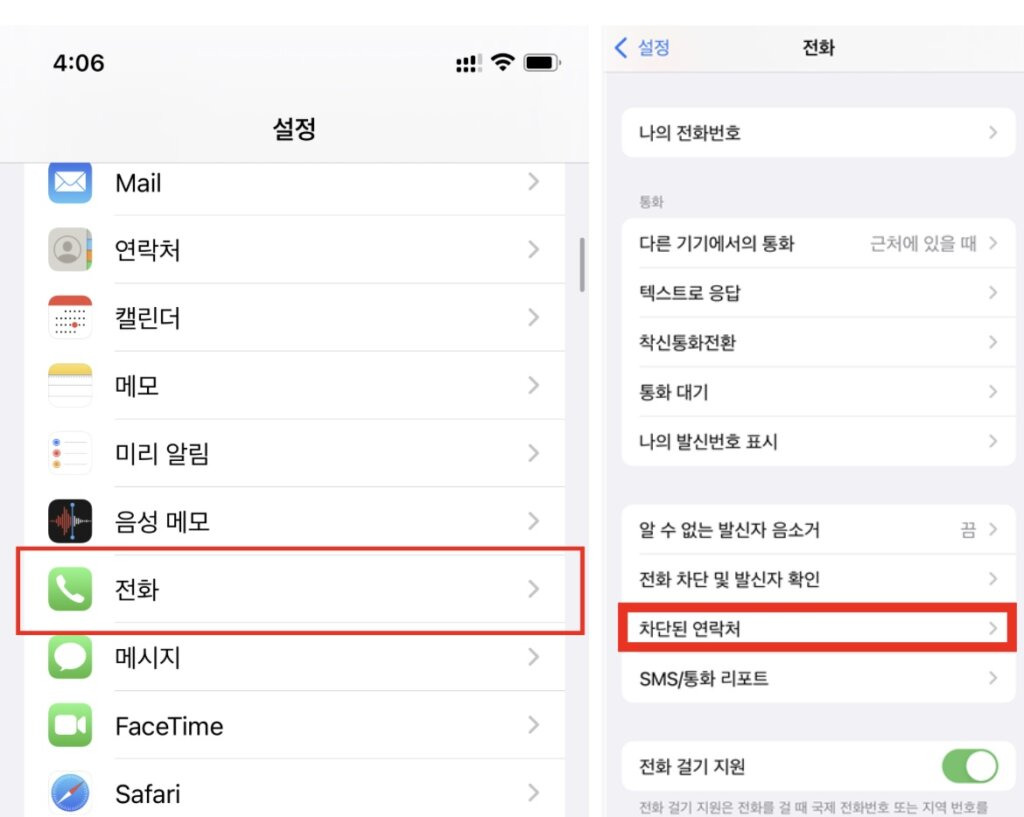 아이폰에서 070 전화를 차단하는 방법은 다음과 같습니다: