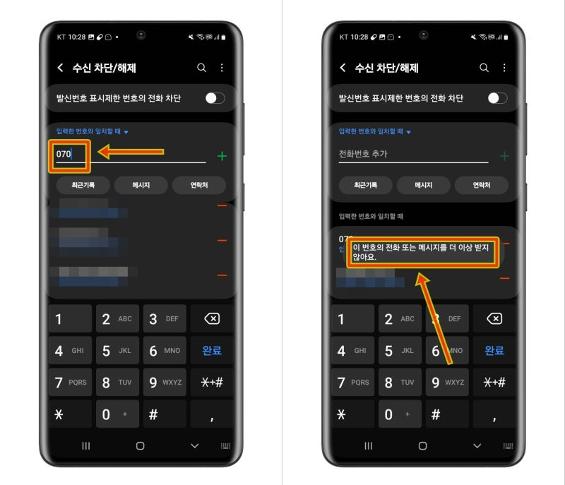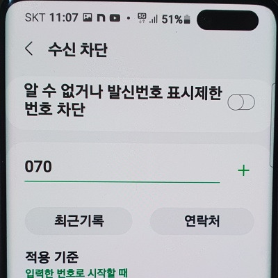 갤럭시 스마트폰에서 070 전화를 차단하는 방법은 다음과 같습니다:
